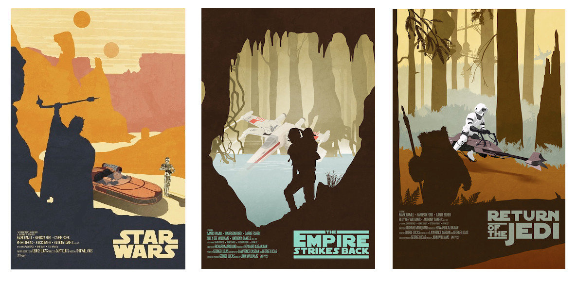 Una de las más nobles expresiones de admiración es el fanArt, es cuando un ñoño muestra donde tiene su corazón. Y con esta idea, te presento mi selección de afiches de Star Wars.