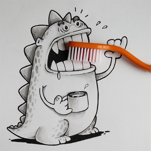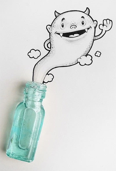 Este ilustrador indio (ojo, no es racismo, sino que vive en India) dibuja caricaturas que se relacionan con objetos reales y el resultado son imágenes llenas de ternura y magia.