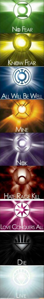 Ahora que ya conoces el color, poder y emoción que domina cada uno de los Cuerpos de Linternas, también sabes cuál es tu anillo, tu juramento, tu líder, tu Entidad y por supuesto, cuál símbolo usar según tu estado de ánimo.