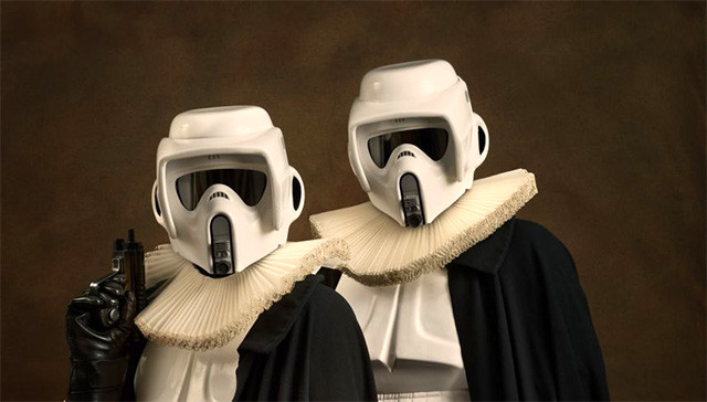 Geniales imágenes para esta ñoñería fotográfica. Además, me encanta que Sacha tome héroes y villanos de DC, Marvel y Star Wars y los instale en una época donde el conocimiento comienza a florecer, la sociedad deja atrás la fe ciega en dios y la iglesia, nuevas tecnologías son desarrolladas y la humanidad se encamina lentamente a la sociedad industrializada que somos hoy. Una sociedad con cómics, cine de ciencia ficción y literatura fantástica… una sociedad cada día más ñoña!!!