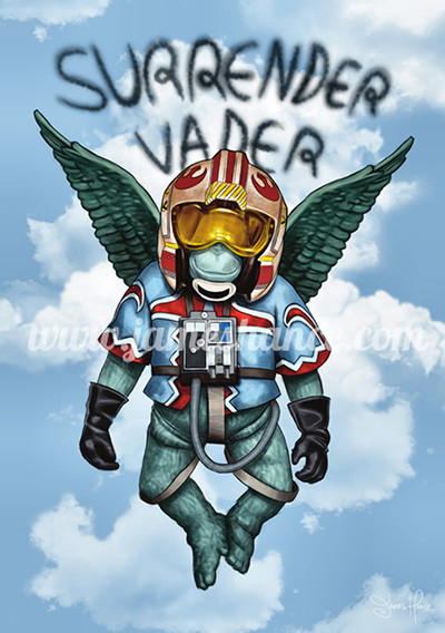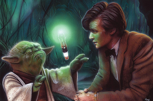 Por supuesto, este artista plástico tiene decenas de ilustraciones y pinturas en su sitio web, pero las que recopilamos para esta entrada son las fusiones que realiza, porque a este ñoño le encanta hacer mash up con sus obras, lo que le agrega un encanto adicional a sus trabajos y porque no decirlo, una buena cuota de humor. Bueno, para que alargar más las palabras, cuando una imagen vale por mil…