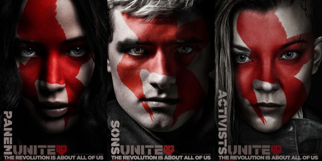 Katniss Everdeen: Katniss compite en Los Juegos del Hambre en las dos primeras novelas y en la tercera, lidera la revolución. Está en constante lucha entre sus sentimientos por Peeta y por Gale.
