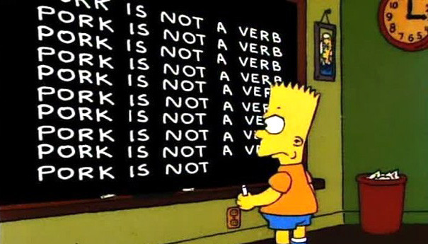 Cada oración tiene su qué o mejor dicho, cada persona que lee la frase la aplica a su propio contexto y realidad, pero al ser genérica, más símbolo que contexto, casi todos nosotros, ñoños de ciudad, la leemos de forma similar. Lo malo de este análisis uno a uno, es que es eterno, no en vano van 25 temporadas de Los Simpson y cientos de pizarras. Por eso dejo estas otras para tu interpretación: