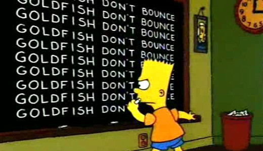 Esta frase es maravillosa. Un mensaje ecológico simple y claro. «Niños, no hagan rebotar sus peces de colores en el suelo, porque los peces de colores no rebotan». Si no me creen a mí, entonces pregúntenle a Bart.