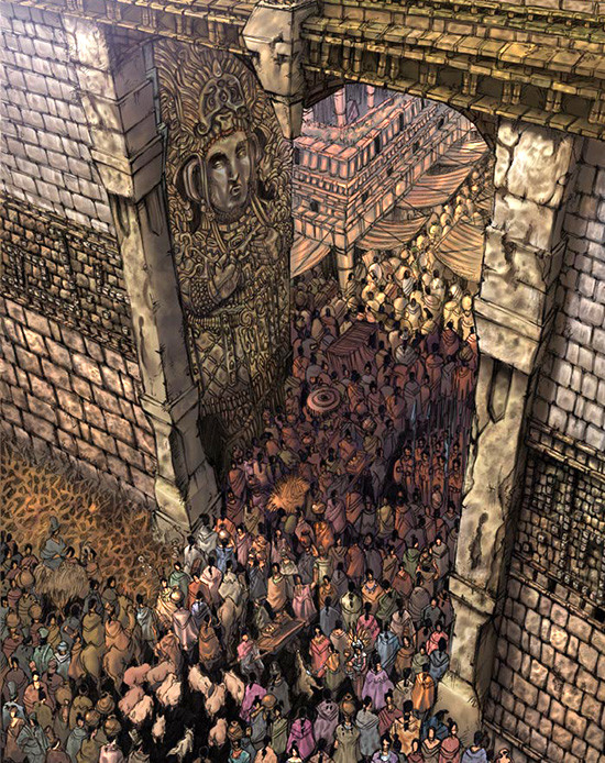Fue complejo, por que estaba con harto trabajo y muy poco tiempo, pero afortunadamente el resultado fue muy satisfactorio. Lo de la isla poco ayuda, la magia está en su geografía, los lugares son maravillosos y contrastan tristemente con la realidad de la gente que la habita, que en su mayoría no la respeta ni cuida. En cuanto a la inspiración para realizar el diseño e ilustración de ORBIS, la magia está en las palabras que acompañan el magnífico relato, esa es la magia que me animó a llevar el mundo de ORBIS a imágenes.