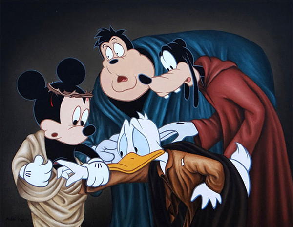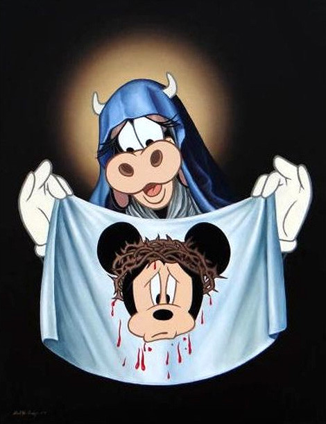 Por supuesto, la exposición contó con gran resonancia mediática, dado el carácter blasfemo de las obras, además del obvio detalle de usar a los personajes de Disney para exponer las preocupaciones del artista. De todas formas, esta no es la primera ni será la última en donde adorados personajes infantiles son usados para exponer los problemas de nuestra sociedad, sin embargo, el señor Rodolfo Loaiza ha hecho de esto su modus operandis. Si no me crees, visita su Flickr.